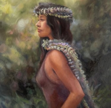Malia Barreras-Float is an oil painter from the Big Island of Hawaii whose work is rooted in a lifelong love of drawing and observation. She completed a three-year diploma program in classical oil painting in Florence, Italy, following earlier studies in Ventura, California, where she worked towards an AA in Fine Arts. Now back on Hawaii Island, Malia is developing a new body of work inspired by the island's natural beauty, focusing on vibrant florals, nature and subjects that reflect the depth, color, and atmosphere of her home.